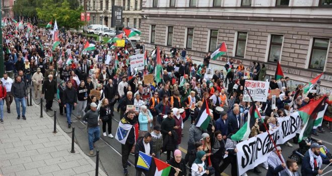 Protest “Bosna i Hercegovina za slobodnu Palestinu” održava se u Sarajevu u organizaciji neformalne grupe građana. Okupljanje je počelo u 13 sati ispred Spomenika djeci opkoljenog Sarajeva, a šetnja je nastavljena prema parku između Historijskog i Zemaljskog muzeja. Nakon čitanja zahtjeva organizatora, održava se umjetničko-kulturni program u kojem učestvuju Larisa Musić i Irma Alimanović, dok će manifestacija biti zaključena izvođenjem antifašističke pjesme “Bella Ciao” u izvedbi hora Chorus Cadenza.