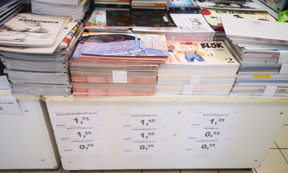 Cijene školskog pribora su više nego prošle godine. Sveske koštaju od 1,30 KM do 3,60 KM, prazne pernice od 4 do 13 KM, a kada se tome dodaju obične i hemijske olovke, drvene i voštane bojice, tempere, šestari, kistovi, ljepilo, kajdanke i slično, minimalni troškovi prelaze 100 KM.
